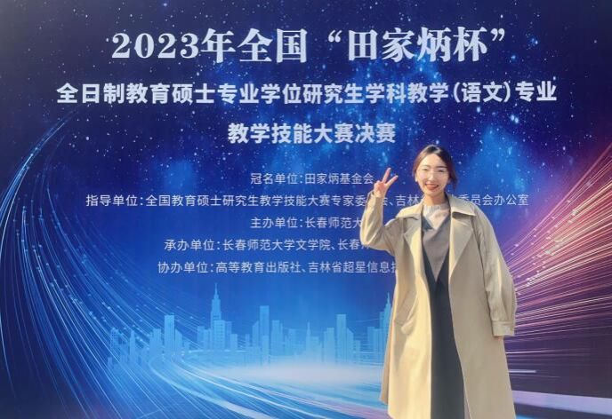 On October 16th, 2023, the finals of the “National Tian Jiabing Cup" (Professional Teaching Skills Competition) were successfully completed at Changchun Normal University. After fierce competition, Jin Xueyu, our M.Ed. student from the School of Teacher Education of Jiangsu University, won the second prize.