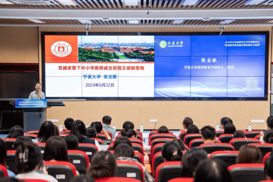 On 22 September, the 2024 Jiangsu Postgraduate Academic Innovation Forum on ‘Theory and Practice of High-Quality Development of Basic Education’ was successfully held at Jiangsu University. The forum was conducted by the Jiangsu Province Education Graduate Education Steering Committee and was undertaken by Jiangsu University. Over 120 postgraduates from Nanjing University, Nanjing Normal University, Northeast Normal University, Hunan Normal University, Jiangnan University, Nantong University, Suzhou University of Science and Technology, Nanjing University of Information Engineering, Jiangsu University and other universities participated in the Forum.