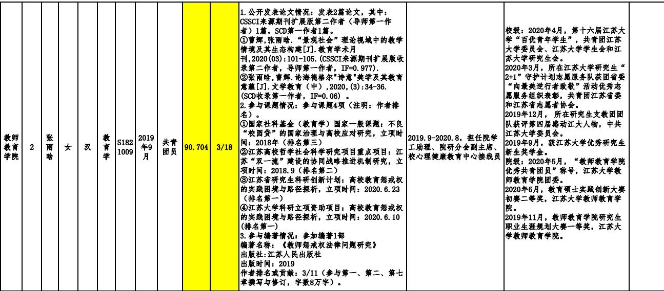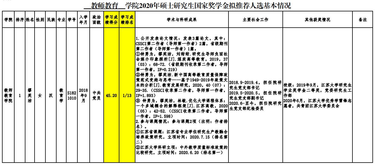 经个人申请,综合答辩,学院研究生国家奖学金评审工作小组审定,确定缪英洁、张雨晗同学为污污漫画 2020年研究生国家奖学金推荐人选,倪梦娟同学为备选推荐人选,详细见附件。公示期为10月9日-10月14日。若对公示名单有异议,请于公示期内与污污漫画 行政办公室联系,联系电话:0511-88790665,地址:三江楼1805。