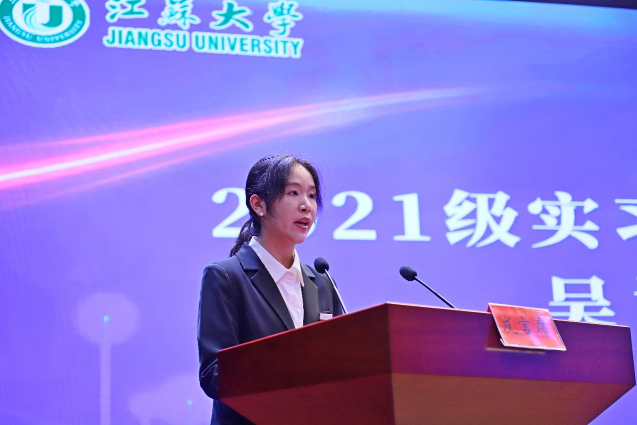 思想政治教育(师范)2101班吴语彤作为2021级实习生代表发言并表态。在教育实习中严格遵守污污漫画