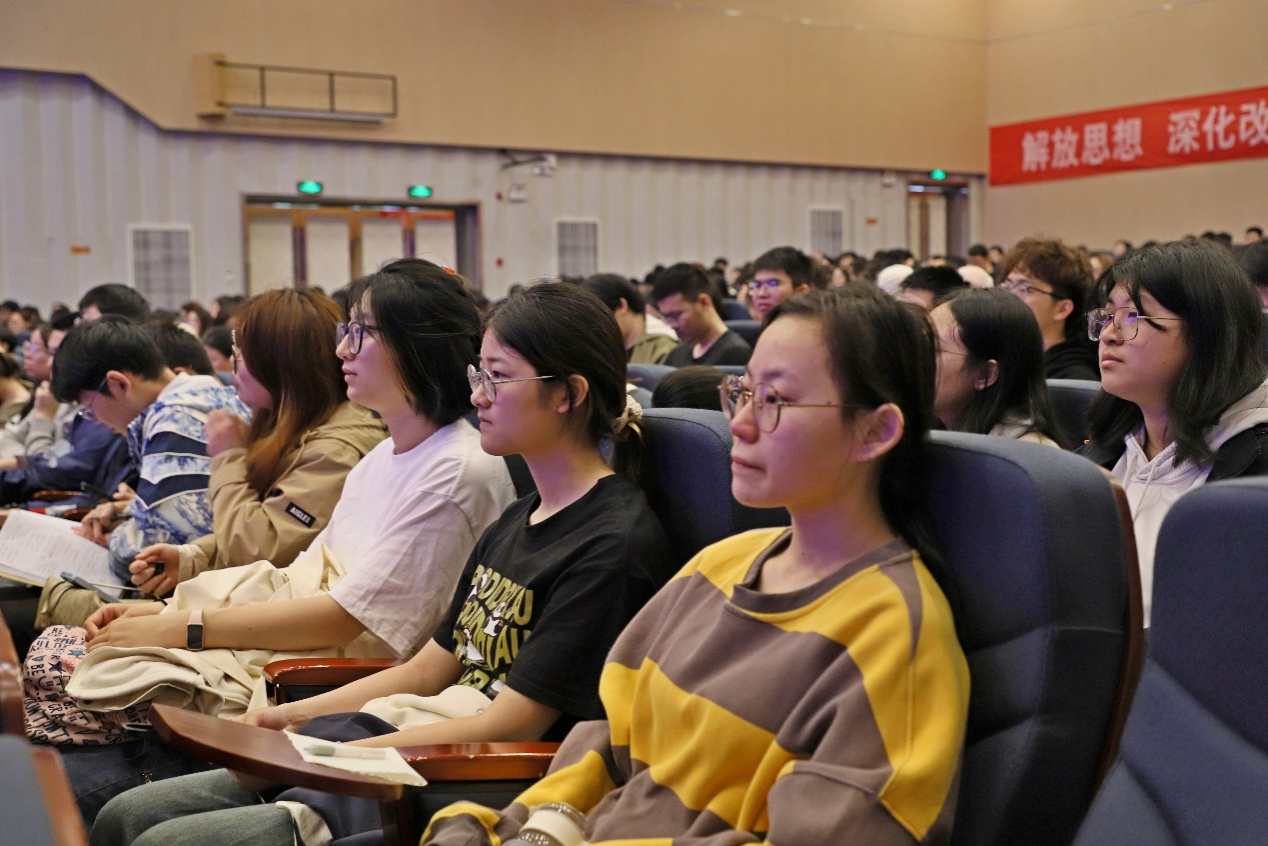 在大会第二阶段,江苏省特级教师徐明作题为《让每个X都闪光——说说实习那些事儿》的讲座。徐老师从装好初始系统、链接趋势端口、掌握基本操作、点亮关键窗口和丰富自我内存五个方面展开交流,现场邀请多位学生互动,为师范生点亮思维火花,生动诠释了“教育不是灌输,而是点燃火焰”的教育理念。