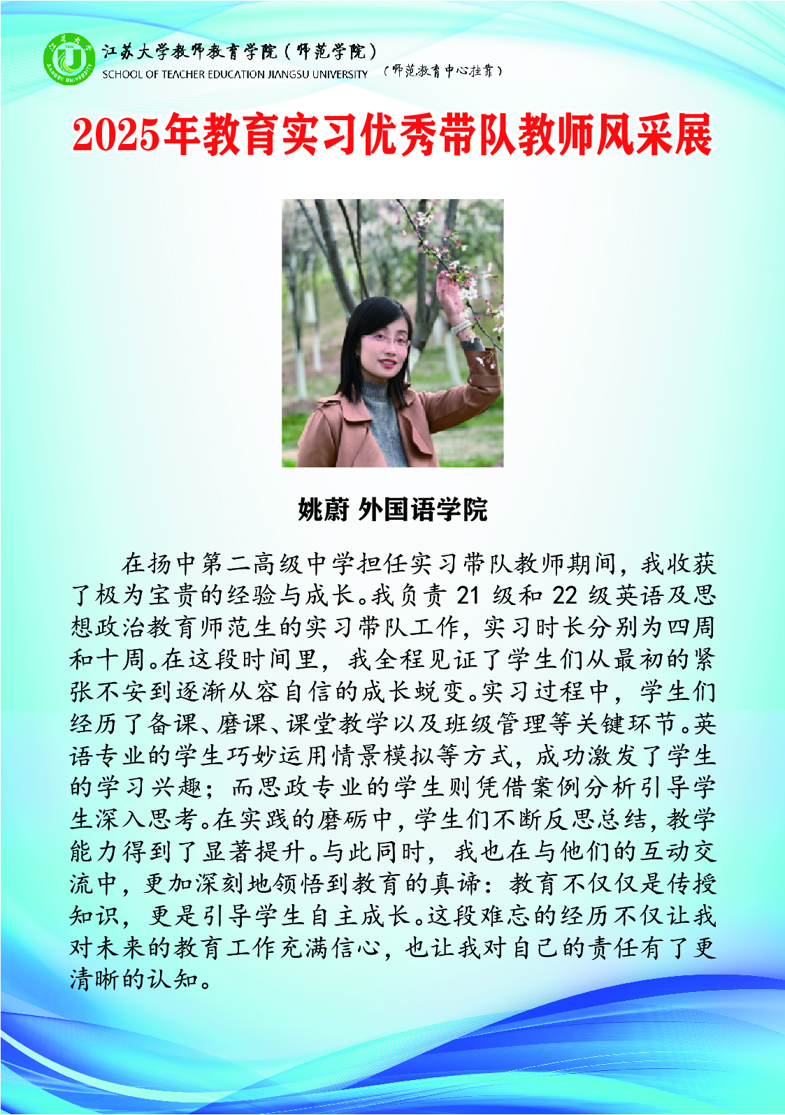上一条:2025年教育实习优秀指导教师风采展 下一条:2025届师范生教育实习优秀风采展