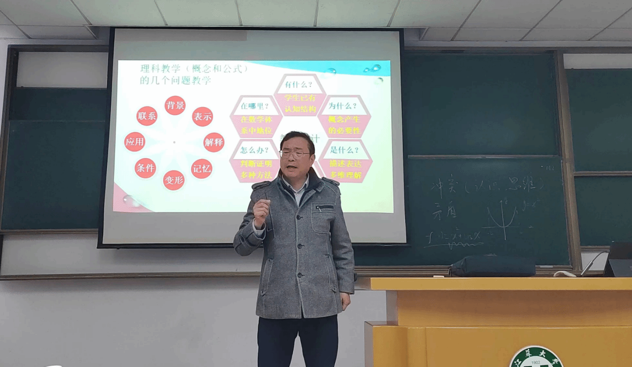 和迎松书院在三江楼515举办师范生核心素养实现的策略与路径讲座。本次讲座邀请镇江市教育科学研究院高中研究中心主任、高中数学教研员黄厚忠主讲,师范教育中心办公室副主任尹华、数学科学学院辅导员朱江涛和我校各专业师范生参加,数学(师范)2202班孙秋涛主持。