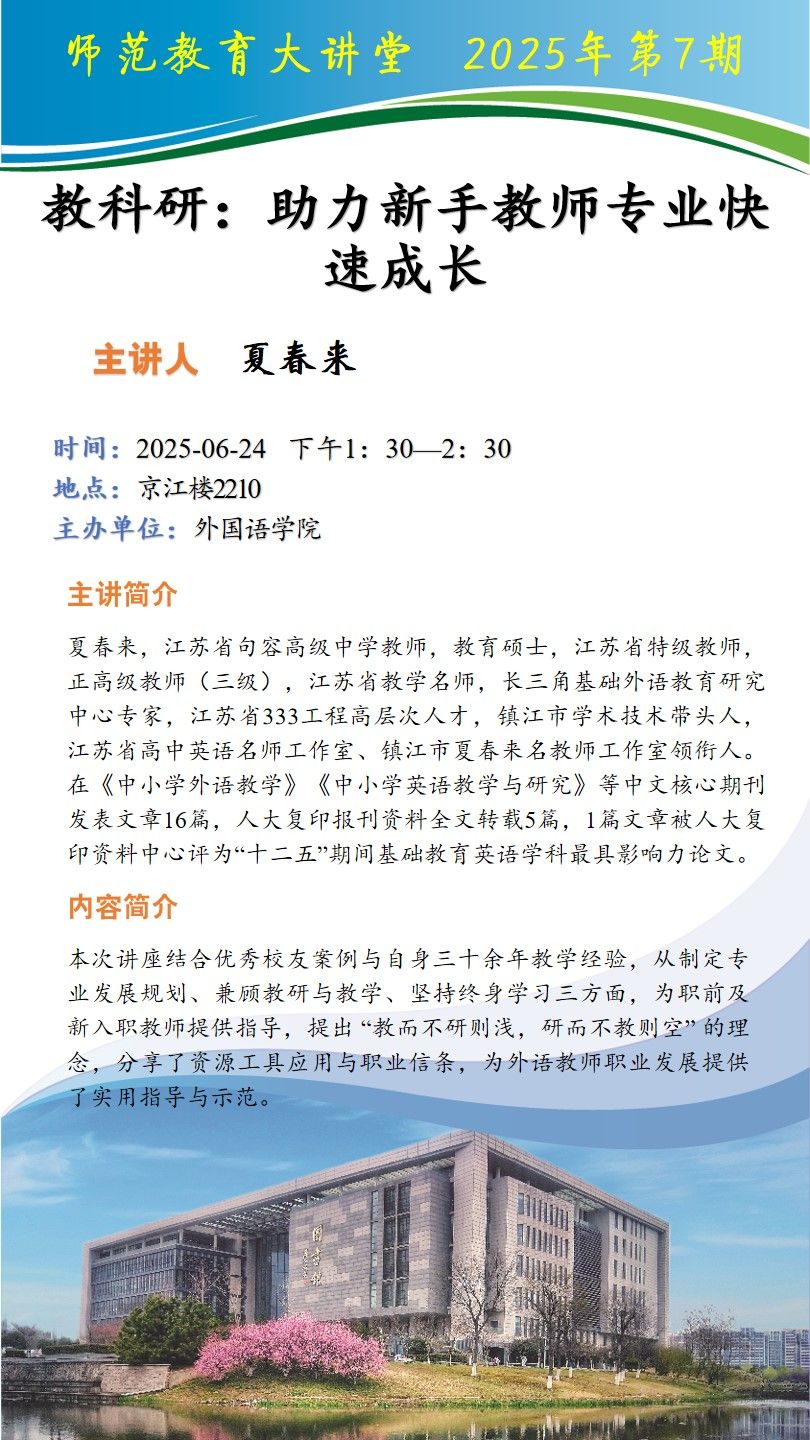 上一条:江苏省师范院校教师智慧教学大赛备赛指导交流会召开 下一条:2025年教育实习优秀指导教师风采展
